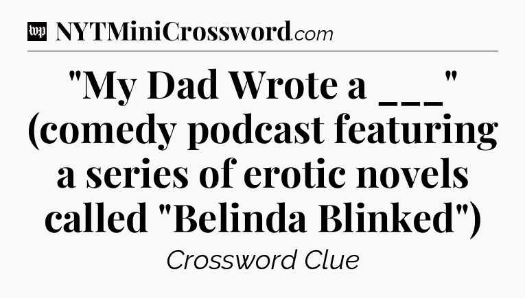 You’ve come to our website, which offers answers for the Washington Post Sunday Crossword game. With this website, you will not need any other help to pass difficult task or level. It helps you with “My Dad Wrote a ___” (comedy podcast featuring a series of erotic novels called “Belinda Blinked”) crossword clue answers, some additional solutions and useful tips and tricks. The team that named The Washington Post, which has developed a lot of great other games and add this game to the Google Play and Apple stores.