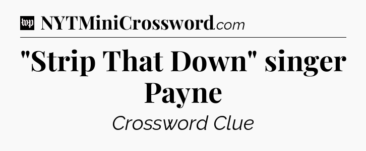 You’ve come to our website, which offers answers for the Washington Post Sunday Crossword game. With this website, you will not need any other help to pass difficult task or level. It helps you with “Strip That Down” singer Payne crossword clue answers, some additional solutions and useful tips and tricks. The team that named The Washington Post, which has developed a lot of great other games and add this game to the Google Play and Apple stores.
