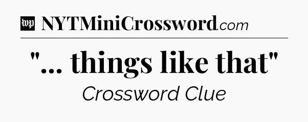 You’ve come to our website, which offers answers for the Washington Post Sunday Crossword game. With this website, you will not need any other help to pass difficult task or level. It helps you with “… things like that” crossword clue answers, some additional solutions and useful tips and tricks. The team that named The Washington Post, which has developed a lot of great other games and add this game to the Google Play and Apple stores.