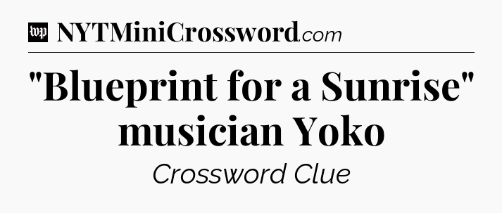 You’ve come to our website, which offers answers for the Washington Post Sunday Crossword game. With this website, you will not need any other help to pass difficult task or level. It helps you with “Blueprint for a Sunrise” musician Yoko crossword clue answers, some additional solutions and useful tips and tricks. The team that named The Washington Post, which has developed a lot of great other games and add this game to the Google Play and Apple stores.