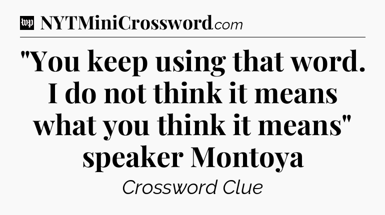 The Answer for “You keep using that word. I do not think it means what you think it means” speaker Montoya Crossword Clue is: