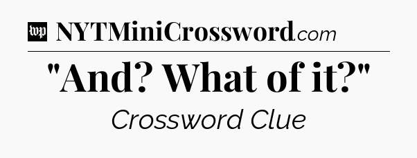 You’ve come to our website, which offers answers for the Washington Post Sunday Crossword game. With this website, you will not need any other help to pass difficult task or level. It helps you with “And? What of it?” crossword clue answers, some additional solutions and useful tips and tricks. The team that named The Washington Post, which has developed a lot of great other games and add this game to the Google Play and Apple stores.