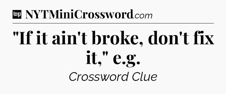The Answer for “If it ain’t broke, don’t fix it,” e.g Crossword Clue is: