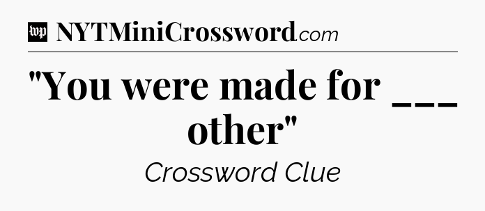 The Answer for “You were made for ___ other” Crossword Clue is: