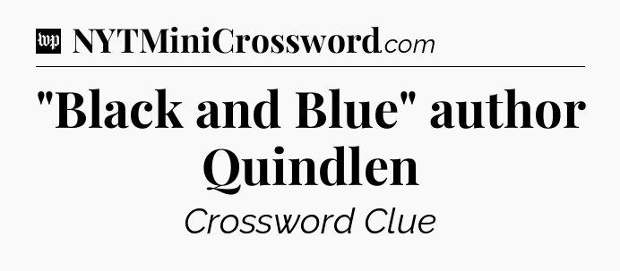 You’ve come to our website, which offers answers for the Washington Post Sunday Crossword game. With this website, you will not need any other help to pass difficult task or level. It helps you with “Black and Blue” author Quindlen crossword clue answers, some additional solutions and useful tips and tricks. The team that named The Washington Post, which has developed a lot of great other games and add this game to the Google Play and Apple stores.
