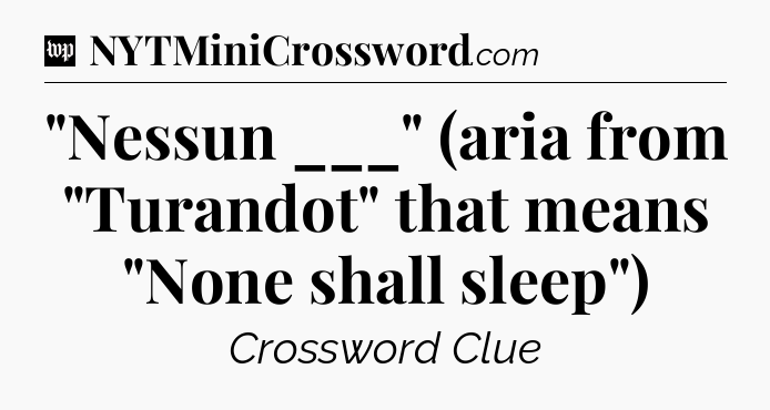 You’ve come to our website, which offers answers for the Washington Post Sunday Crossword game. With this website, you will not need any other help to pass difficult task or level. It helps you with “Nessun ___” (aria from “Turandot” that means “None shall sleep”) crossword clue answers, some additional solutions and useful tips and tricks. The team that named The Washington Post, which has developed a lot of great other games and add this game to the Google Play and Apple stores.