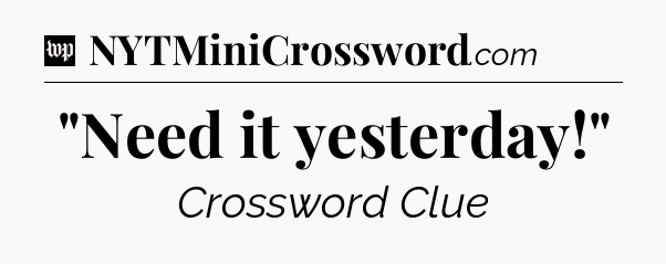 The Answer for “Need it yesterday!” Crossword Clue is: