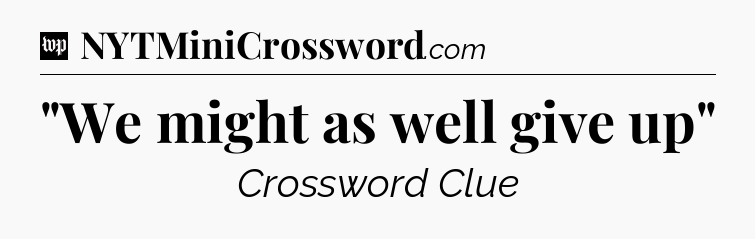 You’ve come to our website, which offers answers for the Washington Post Sunday Crossword game. With this website, you will not need any other help to pass difficult task or level. It helps you with “We might as well give up” crossword clue answers, some additional solutions and useful tips and tricks. The team that named The Washington Post, which has developed a lot of great other games and add this game to the Google Play and Apple stores.