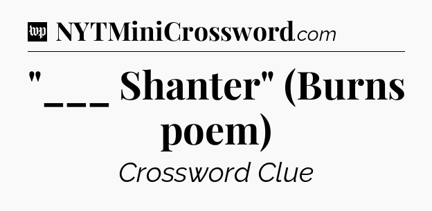 You’ve come to our website, which offers answers for the Washington Post Sunday Crossword game. With this website, you will not need any other help to pass difficult task or level. It helps you with “___ Shanter” (Burns poem) crossword clue answers, some additional solutions and useful tips and tricks. The team that named The Washington Post, which has developed a lot of great other games and add this game to the Google Play and Apple stores.