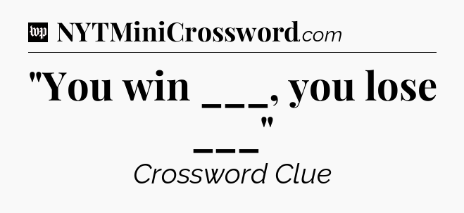 You’ve come to our website, which offers answers for the Washington Post Sunday Crossword game. With this website, you will not need any other help to pass difficult task or level. It helps you with “You win ___, you lose ___” crossword clue answers, some additional solutions and useful tips and tricks. The team that named The Washington Post, which has developed a lot of great other games and add this game to the Google Play and Apple stores.