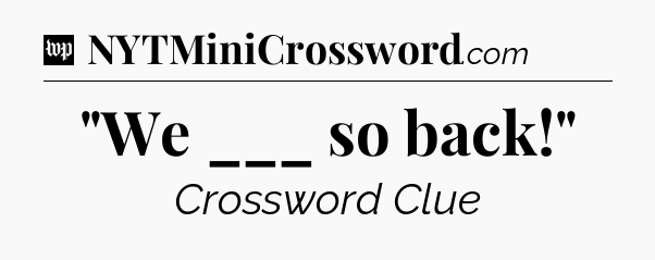 You’ve come to our website, which offers answers for the Washington Post Sunday Crossword game. With this website, you will not need any other help to pass difficult task or level. It helps you with “We ___ so back!” crossword clue answers, some additional solutions and useful tips and tricks. The team that named The Washington Post, which has developed a lot of great other games and add this game to the Google Play and Apple stores.