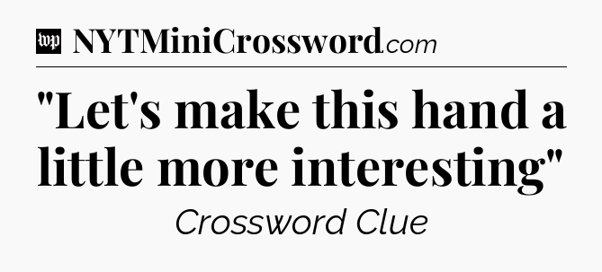 You’ve come to our website, which offers answers for the Washington Post Sunday Crossword game. With this website, you will not need any other help to pass difficult task or level. It helps you with “Let’s make this hand a little more interesting” crossword clue answers, some additional solutions and useful tips and tricks. The team that named The Washington Post, which has developed a lot of great other games and add this game to the Google Play and Apple stores.
