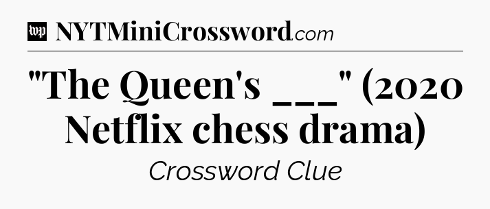 You’ve come to our website, which offers answers for the Washington Post Sunday Crossword game. With this website, you will not need any other help to pass difficult task or level. It helps you with “The Queen’s ___” (2020 Netflix chess drama) crossword clue answers, some additional solutions and useful tips and tricks. The team that named The Washington Post, which has developed a lot of great other games and add this game to the Google Play and Apple stores.