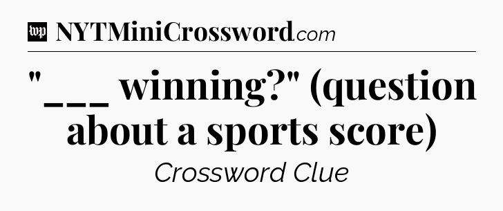 You’ve come to our website, which offers answers for the Washington Post Sunday Crossword game. With this website, you will not need any other help to pass difficult task or level. It helps you with “___ winning?” (question about a sports score) crossword clue answers, some additional solutions and useful tips and tricks. The team that named The Washington Post, which has developed a lot of great other games and add this game to the Google Play and Apple stores.