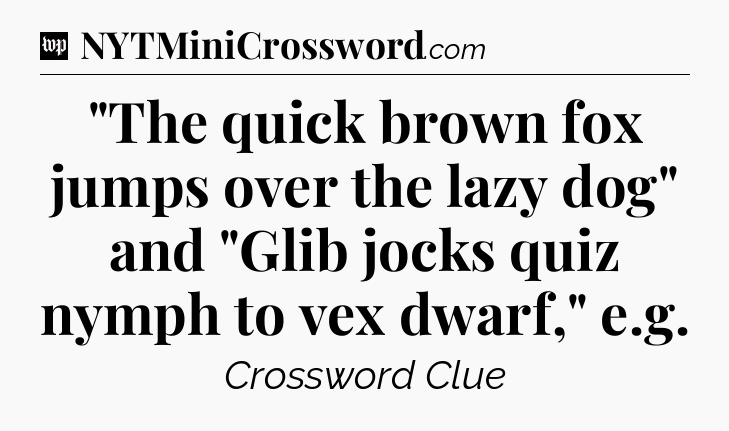 The Answer for “The quick brown fox jumps over the lazy dog” and “Glib jocks quiz nymph to vex dwarf,” e.g Crossword Clue is: