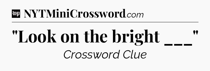 You’ve come to our website, which offers answers for the Washington Post Sunday Crossword game. With this website, you will not need any other help to pass difficult task or level. It helps you with “Look on the bright ___” crossword clue answers, some additional solutions and useful tips and tricks. The team that named The Washington Post, which has developed a lot of great other games and add this game to the Google Play and Apple stores.