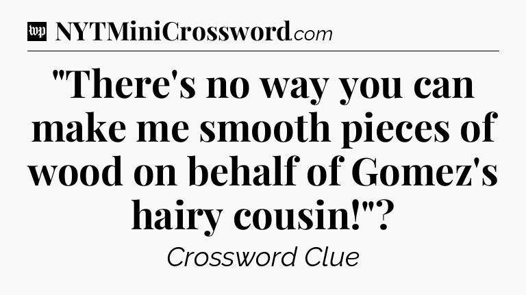 You’ve come to our website, which offers answers for the Washington Post Sunday Crossword game. With this website, you will not need any other help to pass difficult task or level. It helps you with “There’s no way you can make me smooth pieces of wood on behalf of Gomez’s hairy cousin!” crossword clue answers, some additional solutions and useful tips and tricks. The team that named The Washington Post, which has developed a lot of great other games and add this game to the Google Play and Apple stores.
