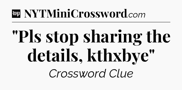 The Answer for “Pls stop sharing the details, kthxbye” Crossword Clue is: