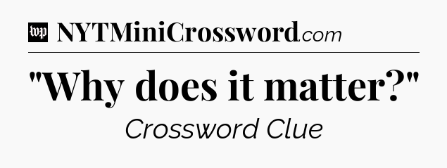 You’ve come to our website, which offers answers for the Washington Post Sunday Crossword game. With this website, you will not need any other help to pass difficult task or level. It helps you with “Why does it matter?” crossword clue answers, some additional solutions and useful tips and tricks. The team that named The Washington Post, which has developed a lot of great other games and add this game to the Google Play and Apple stores.