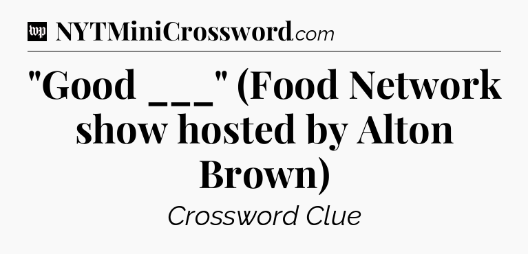 The Answer for “Good ___” (Food Network show hosted by Alton Brown) Crossword Clue is: