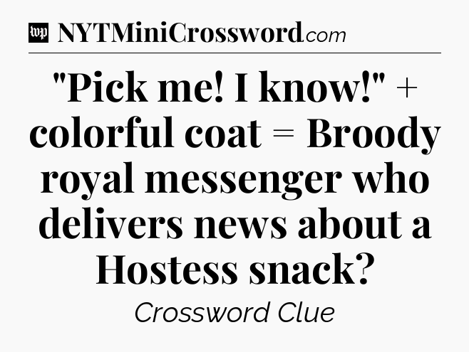 You’ve come to our website, which offers answers for the Washington Post Sunday Crossword game. With this website, you will not need any other help to pass difficult task or level. It helps you with “Pick me! I know!” + colorful coat = Broody royal messenger who delivers news about a Hostess snack crossword clue answers, some additional solutions and useful tips and tricks. The team that named The Washington Post, which has developed a lot of great other games and add this game to the Google Play and Apple stores.