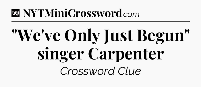 You’ve come to our website, which offers answers for the Washington Post Sunday Crossword game. With this website, you will not need any other help to pass difficult task or level. It helps you with “We’ve Only Just Begun” singer Carpenter crossword clue answers, some additional solutions and useful tips and tricks. The team that named The Washington Post, which has developed a lot of great other games and add this game to the Google Play and Apple stores.