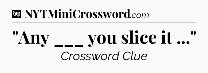 You’ve come to our website, which offers answers for the Washington Post Sunday Crossword game. With this website, you will not need any other help to pass difficult task or level. It helps you with “Any ___ you slice it …” crossword clue answers, some additional solutions and useful tips and tricks. The team that named The Washington Post, which has developed a lot of great other games and add this game to the Google Play and Apple stores.
