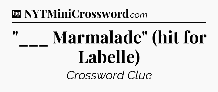 You’ve come to our website, which offers answers for the Washington Post Sunday Crossword game. With this website, you will not need any other help to pass difficult task or level. It helps you with “___ Marmalade” (hit for Labelle) crossword clue answers, some additional solutions and useful tips and tricks. The team that named The Washington Post, which has developed a lot of great other games and add this game to the Google Play and Apple stores.