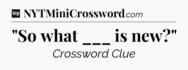 You’ve come to our website, which offers answers for the Washington Post Sunday Crossword game. With this website, you will not need any other help to pass difficult task or level. It helps you with “So what ___ is new?” crossword clue answers, some additional solutions and useful tips and tricks. The team that named The Washington Post, which has developed a lot of great other games and add this game to the Google Play and Apple stores.