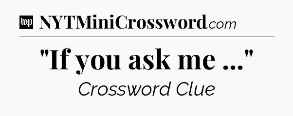 You’ve come to our website, which offers answers for the Washington Post Sunday Crossword game. With this website, you will not need any other help to pass difficult task or level. It helps you with “If you ask me …” crossword clue answers, some additional solutions and useful tips and tricks. The team that named The Washington Post, which has developed a lot of great other games and add this game to the Google Play and Apple stores.