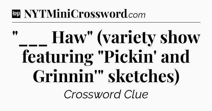You’ve come to our website, which offers answers for the Washington Post Sunday Crossword game. With this website, you will not need any other help to pass difficult task or level. It helps you with “___ Haw” (variety show featuring “Pickin’ and Grinnin'” sketches) crossword clue answers, some additional solutions and useful tips and tricks. The team that named The Washington Post, which has developed a lot of great other games and add this game to the Google Play and Apple stores.