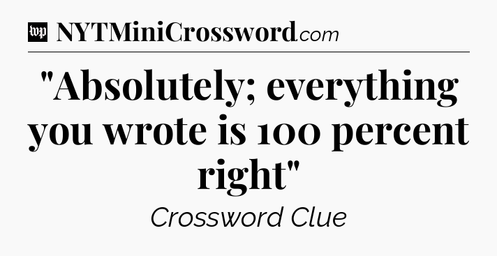 You’ve come to our website, which offers answers for the Washington Post Sunday Crossword game. With this website, you will not need any other help to pass difficult task or level. It helps you with “Absolutely; everything you wrote is 100 percent right” crossword clue answers, some additional solutions and useful tips and tricks. The team that named The Washington Post, which has developed a lot of great other games and add this game to the Google Play and Apple stores.