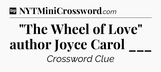 You’ve come to our website, which offers answers for the Washington Post Sunday Crossword game. With this website, you will not need any other help to pass difficult task or level. It helps you with “The Wheel of Love” author Joyce Carol ___ crossword clue answers, some additional solutions and useful tips and tricks. The team that named The Washington Post, which has developed a lot of great other games and add this game to the Google Play and Apple stores.