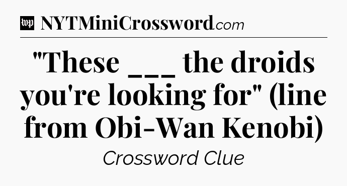 You’ve come to our website, which offers answers for the Washington Post Sunday Crossword game. With this website, you will not need any other help to pass difficult task or level. It helps you with “These ___ the droids you’re looking for” (line from Obi-Wan Kenobi) crossword clue answers, some additional solutions and useful tips and tricks. The team that named The Washington Post, which has developed a lot of great other games and add this game to the Google Play and Apple stores.