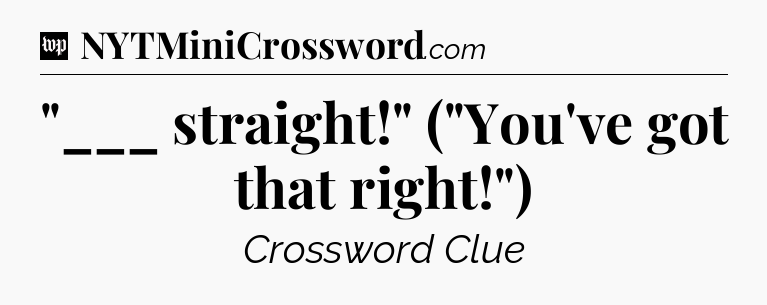 You’ve come to our website, which offers answers for the Washington Post Sunday Crossword game. With this website, you will not need any other help to pass difficult task or level. It helps you with “___ straight!” (“You’ve got that right!”) crossword clue answers, some additional solutions and useful tips and tricks. The team that named The Washington Post, which has developed a lot of great other games and add this game to the Google Play and Apple stores.