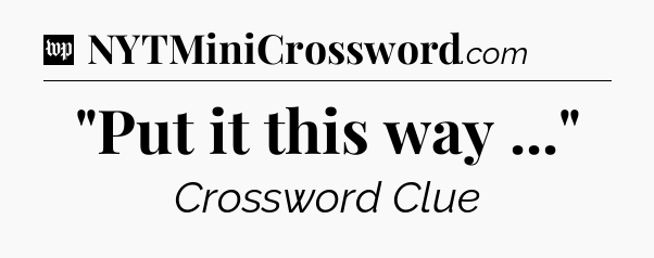 You’ve come to our website, which offers answers for the Washington Post Sunday Crossword game. With this website, you will not need any other help to pass difficult task or level. It helps you with “Put it this way …” crossword clue answers, some additional solutions and useful tips and tricks. The team that named The Washington Post, which has developed a lot of great other games and add this game to the Google Play and Apple stores.