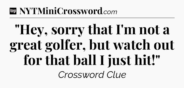 You’ve come to our website, which offers answers for the Washington Post Sunday Crossword game. With this website, you will not need any other help to pass difficult task or level. It helps you with “Hey, sorry that I’m not a great golfer, but watch out for that ball I just hit!” crossword clue answers, some additional solutions and useful tips and tricks. The team that named The Washington Post, which has developed a lot of great other games and add this game to the Google Play and Apple stores.