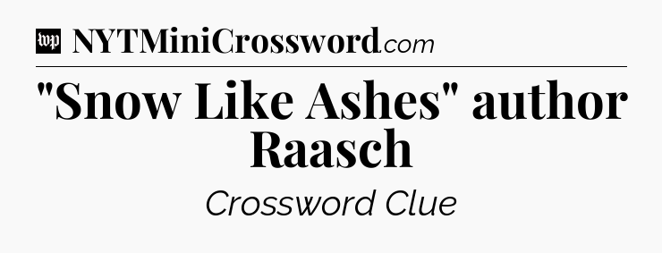 You’ve come to our website, which offers answers for the Washington Post Sunday Crossword game. With this website, you will not need any other help to pass difficult task or level. It helps you with “Snow Like Ashes” author Raasch crossword clue answers, some additional solutions and useful tips and tricks. The team that named The Washington Post, which has developed a lot of great other games and add this game to the Google Play and Apple stores.