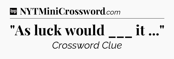 You’ve come to our website, which offers answers for the Washington Post Sunday Crossword game. With this website, you will not need any other help to pass difficult task or level. It helps you with “As luck would ___ it …” crossword clue answers, some additional solutions and useful tips and tricks. The team that named The Washington Post, which has developed a lot of great other games and add this game to the Google Play and Apple stores.