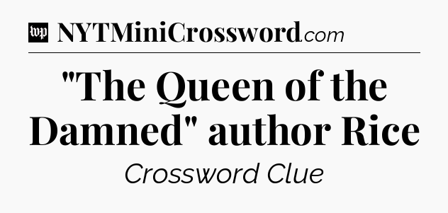 You’ve come to our website, which offers answers for the Washington Post Sunday Crossword game. With this website, you will not need any other help to pass difficult task or level. It helps you with “The Queen of the Damned” author Rice crossword clue answers, some additional solutions and useful tips and tricks. The team that named The Washington Post, which has developed a lot of great other games and add this game to the Google Play and Apple stores.