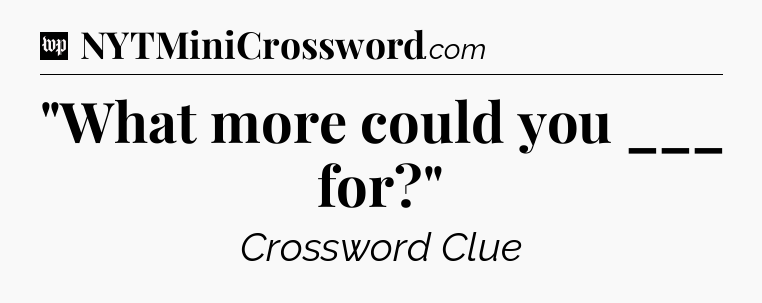 The Answer for “What more could you ___ for?” Crossword Clue is: