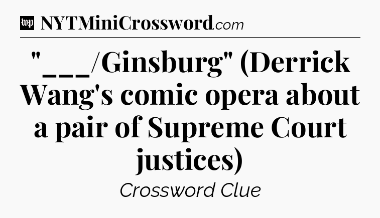 The Answer for “___/Ginsburg” (Derrick Wang’s comic opera about a pair of Supreme Court justices) Crossword Clue is:
