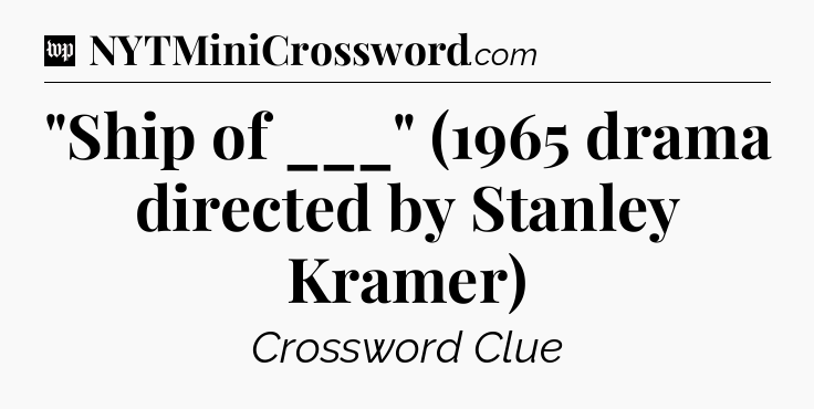 You’ve come to our website, which offers answers for the Washington Post Sunday Crossword game. With this website, you will not need any other help to pass difficult task or level. It helps you with “Ship of ___” (1965 drama directed by Stanley Kramer) crossword clue answers, some additional solutions and useful tips and tricks. The team that named The Washington Post, which has developed a lot of great other games and add this game to the Google Play and Apple stores.
