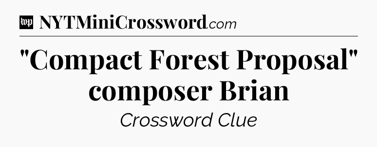 You’ve come to our website, which offers answers for the Washington Post Sunday Crossword game. With this website, you will not need any other help to pass difficult task or level. It helps you with “Compact Forest Proposal” composer Brian crossword clue answers, some additional solutions and useful tips and tricks. The team that named The Washington Post, which has developed a lot of great other games and add this game to the Google Play and Apple stores.