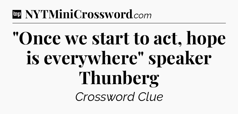 The Answer for “Once we start to act, hope is everywhere” speaker Thunberg Crossword Clue is: