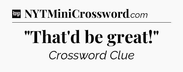 You’ve come to our website, which offers answers for the Washington Post Sunday Crossword game. With this website, you will not need any other help to pass difficult task or level. It helps you with “That’d be great!” crossword clue answers, some additional solutions and useful tips and tricks. The team that named The Washington Post, which has developed a lot of great other games and add this game to the Google Play and Apple stores.