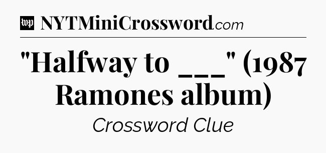 You’ve come to our website, which offers answers for the Washington Post Sunday Crossword game. With this website, you will not need any other help to pass difficult task or level. It helps you with “Halfway to ___” (1987 Ramones album) crossword clue answers, some additional solutions and useful tips and tricks. The team that named The Washington Post, which has developed a lot of great other games and add this game to the Google Play and Apple stores.