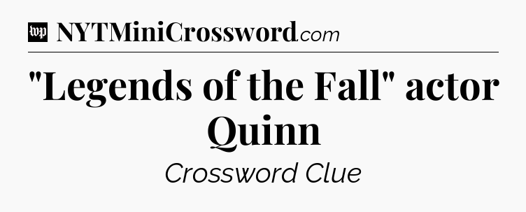 You’ve come to our website, which offers answers for the Washington Post Sunday Crossword game. With this website, you will not need any other help to pass difficult task or level. It helps you with “Legends of the Fall” actor Quinn crossword clue answers, some additional solutions and useful tips and tricks. The team that named The Washington Post, which has developed a lot of great other games and add this game to the Google Play and Apple stores.