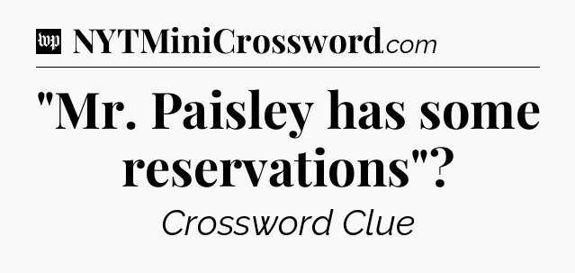 You’ve come to our website, which offers answers for the Washington Post Sunday Crossword game. With this website, you will not need any other help to pass difficult task or level. It helps you with “Mr. Paisley has some reservations” crossword clue answers, some additional solutions and useful tips and tricks. The team that named The Washington Post, which has developed a lot of great other games and add this game to the Google Play and Apple stores.