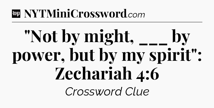 The Answer for “Not by might, ___ by power, but by my spirit”: Zechariah 4:6 Crossword Clue is: